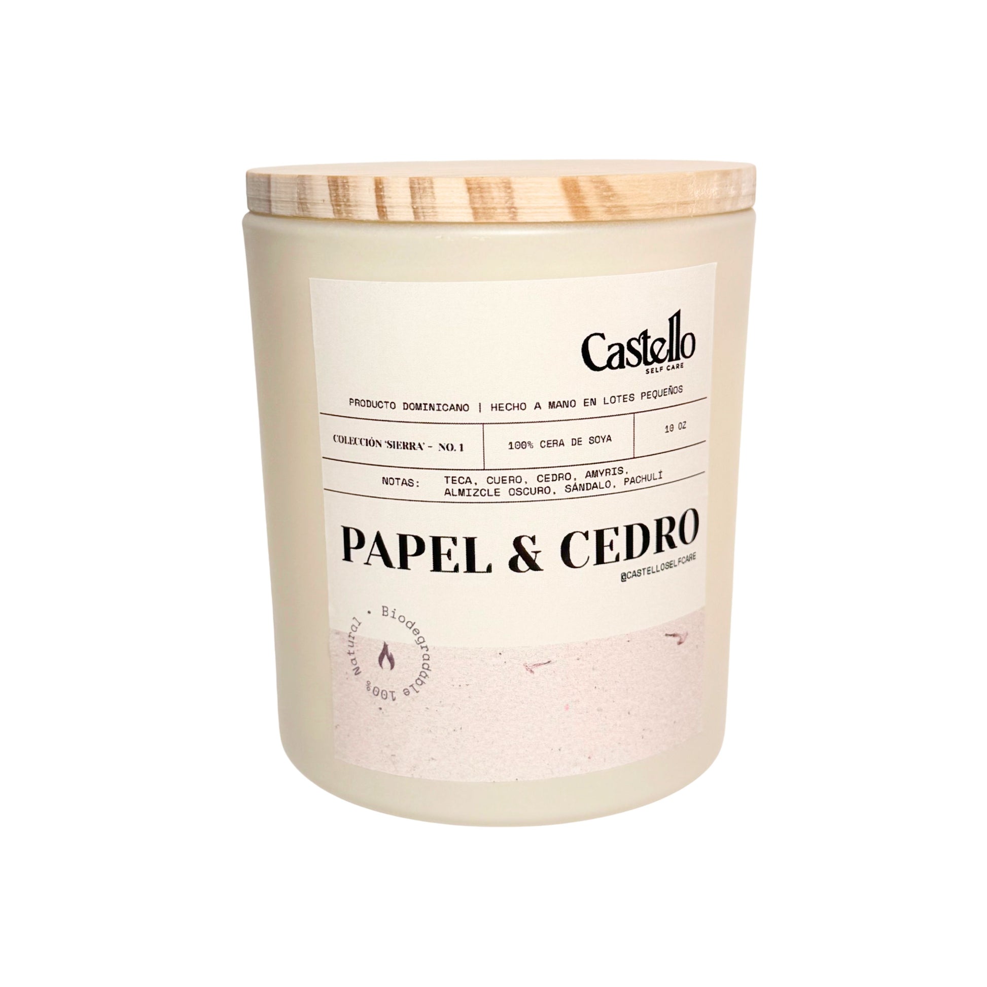 Papel & Cedro es una fragancia evoca el ambiente de una biblioteca antigua, con notas de salida de madera de teca, un corazón de cedro y cuero, y una base envolvente de sándalo, almizcle oscuro y pachulí. Una fragancia cálida, elegante y nostálgica.